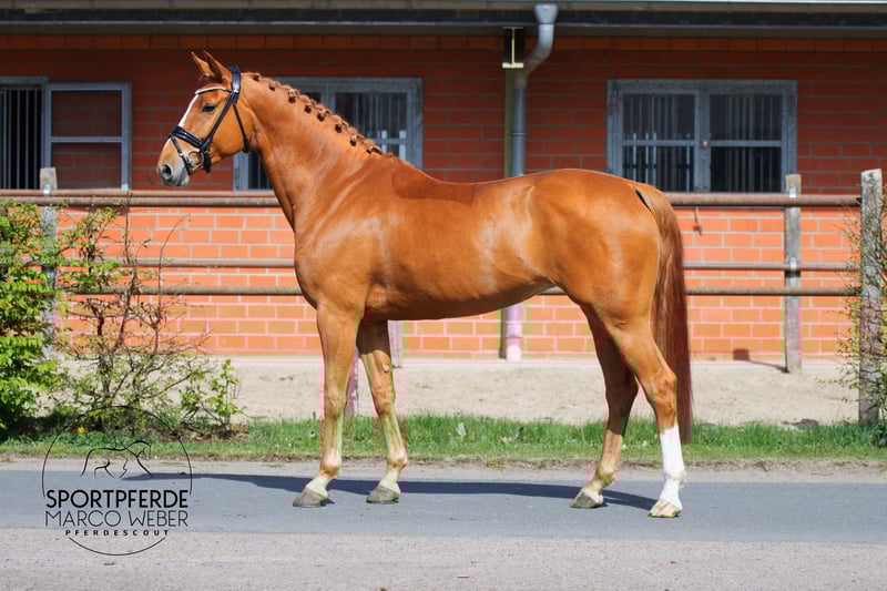 Oldenburger • Stute • *2019 • ca. 1,66 m ⚜️ Zackery – Sandro Hit – Akzent II⚜️ ✨ Charakterstark – qualitätsvoll – beste Abstammung ✨ Diese moderne und ausdrucksstarke Fuchsstute überzeugt auf ganzer Linie mit Qualität, Ausstrahlung und einem hervorragenden Interieur. Im Hengsttyp stehend begeistert sie zusätzlich mit Präsenz und Ausdruck. Als spätreifes Pferd wurde sie bewusst schonend und erst spät angeritten und präsentiert sich daher heute absolut unverbraucht. Unter dem Sattel zeigt sie sich sehr kooperativ, lernwillig und stets klar im Kopf. 💫 Besonders hervorzuheben: Sie vermittelt jederzeit ein sehr gutes Reitgefühl und versteht es, ihren Reiter optimal in Szene zu setzen – ein echtes Wohlfühlpferd mit Ausstrahlung. Mit ihrem korrekten Fundament, ihrer positiven Einstellung und ihrer natürlichen Rittigkeit ist sie die ideale Partnerin für Reiter, die sich ein ehrliches und entwicklungsfähiges Pferd für die weitere Ausbildung wünschen. 👉 Besondere Merkmale: • Spät angeritten – entsprechend unverbraucht • Sehr gutes Interieur & angenehme Rittigkeit • Klar im Kopf und stets arbeitswillig • Im Hengsttyp stehend mit viel Ausdruck • Direkt vom Aufzüchter 👉 Gesundheit: • Guter Röntgen-TÜV inkl. Rücken vorhanden 📍 Standort: Lohne 📞 Kontakt: +49 173 3013499