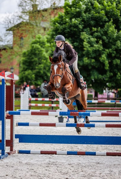 I own a beautiful 6-year-old Oldenburg mare with an excellent pedigree. She has competed up to P-class and has the potential for more. Very rideable, easy to handle, and well-behaved, she is calm around the blacksmith, during clipping, and other procedures. She is not afraid of jumps, water obstacles, or walls; nothing fazes her. She is straightforward and smooth to ride. She stands approximately 165 cm at the withers. For more information, please contact me privately.