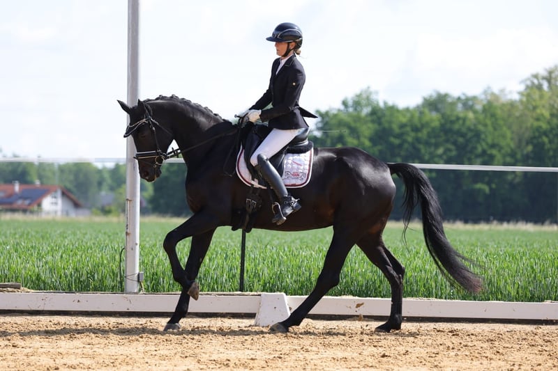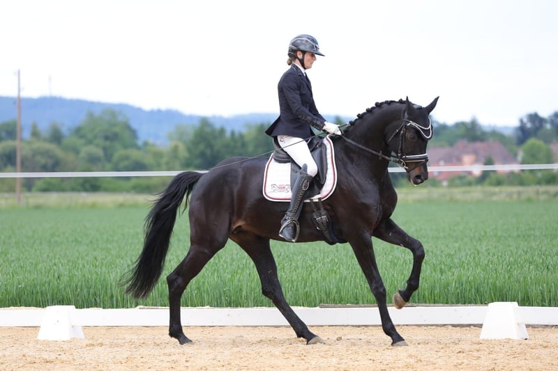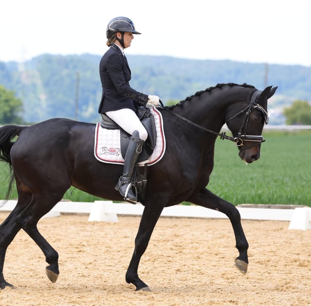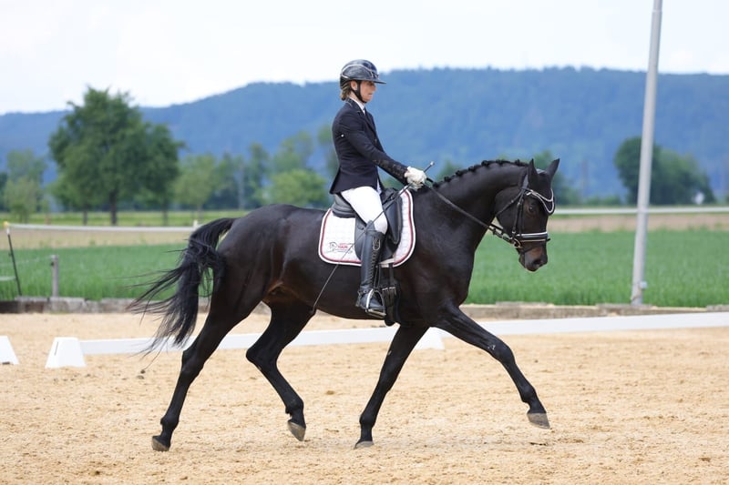 Direkt vom Züchter kommt diese tolle, langbeinige Stute mit wunderschönem Gesicht. 3 top GGA. In sich ruhendes Interieur. Auf dem Freilaufchampionat gab es für den Schritt die 9, den Trab 8.6 und Galopp 8.8. Absolut brav und rittig unter dem Sattel. 3 Starts in Dressurpferde A siegreich. L Dressur siegreich. Sie hatte ein top Stutfohlen von Zardando (Tango x Gribaldi x Contango) und wird seit Dezember 2024 wieder geritten.