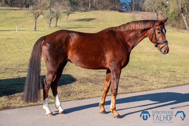 Unsere Beiladora ist ein Nachwuchspferd wie aus dem Bilderbuch. Sie verfügt über 3 sehr gute Grundgangarten, einer wunderbaren Rittigkeit und einer super Einstellung zum Sport. Sie will für ihren Reiter immer alles richtig machen und bereitet einem jeden Tag aufs Neue Freude bei der Arbeit. Beiladora kann Platzierungen in Dressurpferdeprüfungen der Klasse A und L nachweisen und beherrscht zudem jegliche Lektionen der Klasse M. Womit der Sprung in die nächste Klasse kein Problem darstellt. Zudem hat Beiladora große Freude am Springen und zeigt sich auch hier unglaublich geschickt. Sie verfügt zudem über sehr gute Röntgenbilder. Videos können wir bei Anfrage unter 01733430528 sehr gerne versenden.