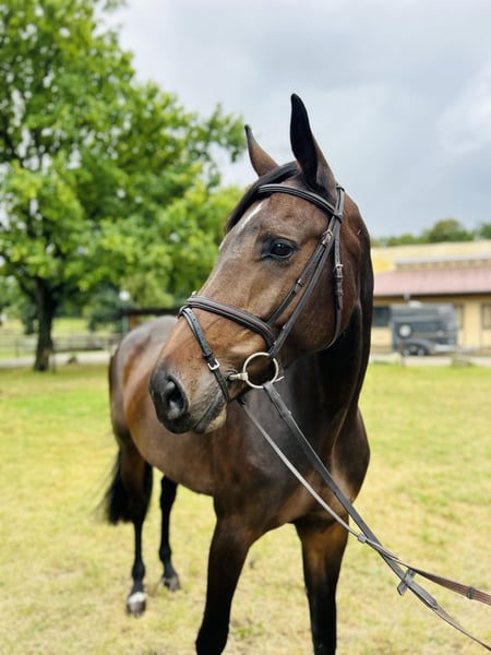 **Advertisement for sale: Beautiful Oldenburg mare for sale** We are offering an outstanding Oldenburg mare for sale: - **Breed:** Oldenburg - **Sex:** Mare - Year of birth:** 2018 - **Color:** Black bay - Height:** 169 cm - **Discipline:** Jumping This elegant and talented mare captivates with her impressive appearance and outstanding jumping ability. She is well trained and ready for new challenges in show jumping. Our Cornetina has currently competed & placed up to novice level show jumping. She was broken in very late. She jumps changes and is very nice & easy in daily dressage work. She is careful at the jump and unimpressed by water mats or planks. However, as she is very fine in the mouth & sensitive on the leg, she is not suitable for *absolute beginners*. If you are interested or for further information please contact us!