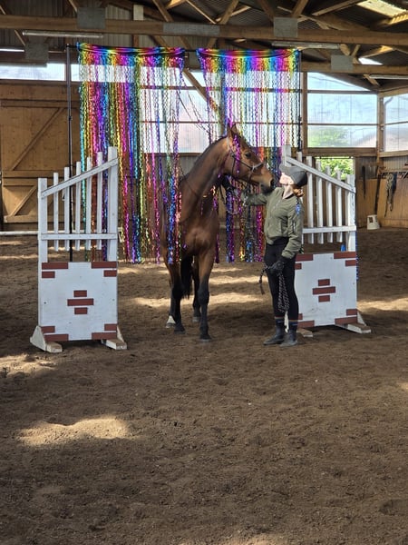 The perfect horse for the competition season. An absolutely charming mare, easy to handle and with a wonderful temperament. Very light in the bridle — making her an ideal horse for beginners or junior riders. Riding her is truly a pleasure. She is very well-behaved under saddle and also experienced in the outdoor arena. Additionally, she is calm and steady, suitable for riders of all levels. More information can be found on our website. Trial rides are available at any time by appointment.