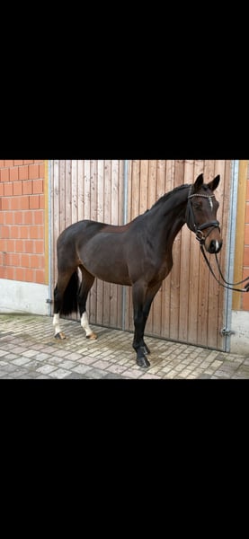 Dressurpferd mit einem Herz aus Gold Zum Verkauf steht eine wunderschöne und sympathische 8-jährige Dressurstute. Sie wurde bisher in der Zucht eingesetzt, hatte nach 4 Trächtigkeiten 3 gesunde Fohlen und leider dieses Jahr eins verloren. . Nachdem sie sich hiervon erholt hat, wurde sie schonend angeritten. Hierbei zeigt sie sich stets aufmerksam und gelassen, ist immer bemüht alles richtig zu machen. Sie zeichnet sich bereits jetzt nach kurzer Zeit unterm Sattel durch eine hohe Rittigkeit, Durchlässigkeit und schwungvolle Bewegungen aus. Im Umgang ist sie sehr menschenbezogen und verschmust. Sie Stute hat einen 1a Charakter. Einen kleinen Sprung macht sie auch schon ganz artig. Wir geben sie aufgrund von Zeitmangel und fehlender Größenpassung in allerbeste und fördernde Hände ab. Wir suchen für dieses Herzenspferd ein 5***** Zuhause, in dem sie genug Aufmerksamkeit bekommt und reiterlich weiter gefördert wird. Neuer Tüv wurde gemacht, dieser ist ohne Befund. Am besten per WhatsApp melden.015155308104