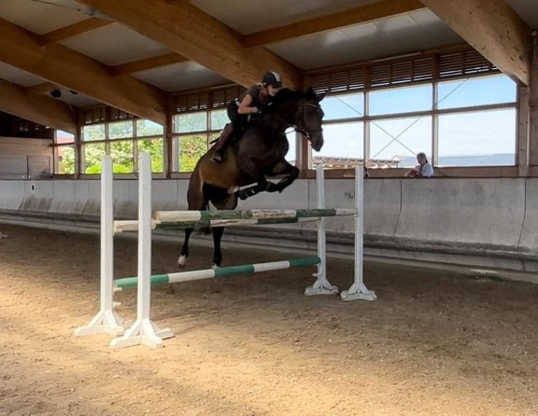 Cindy est un véritable cheval de rêve, idéal pour débuter en saut d'obstacles. Elle possède une grande expérience, soutient son cavalier de manière fiable au saut et pardonne même une erreur de distance. Elle a été placée jusqu’à 1,25 m. Elle est en bonne santé et un certificat vétérinaire récent datant du printemps 2025 est disponible, pouvant être consulté sur demande. Cindy connaît la pension en paddock-box et le pâturage, est sage en extérieur et se montre toujours courageuse. Nous souhaitons pour Cindy une famille aimante où elle pourra continuer à être soutenue et valorisée.