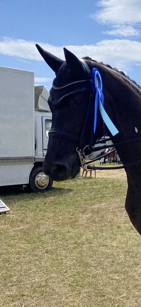 Zum Verkauf steht eine wunderschöne Rappstute die vor allem durch ihr ausgeglichenes Wesen überzeugt! Absolut brav ob zu Hause oder auf dem Turnier immer 100 Prozent verlässlich! Super sitzbequem und einfach zu reiten, deshalb absolut als Amateurpferd, Junior/ Junge Reiter oder Pony Umsteiger geeignet! Aktuell ist sie M ** platziert und S fertig! Sie macht jeden Tag sehr viel Freude, auch im Umgang, beim Schmied oder beim Transportieren absolut unkompliziert! Anfragen gerne telefonisch oder per WhatsApp