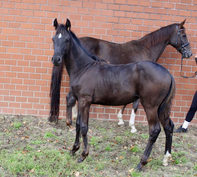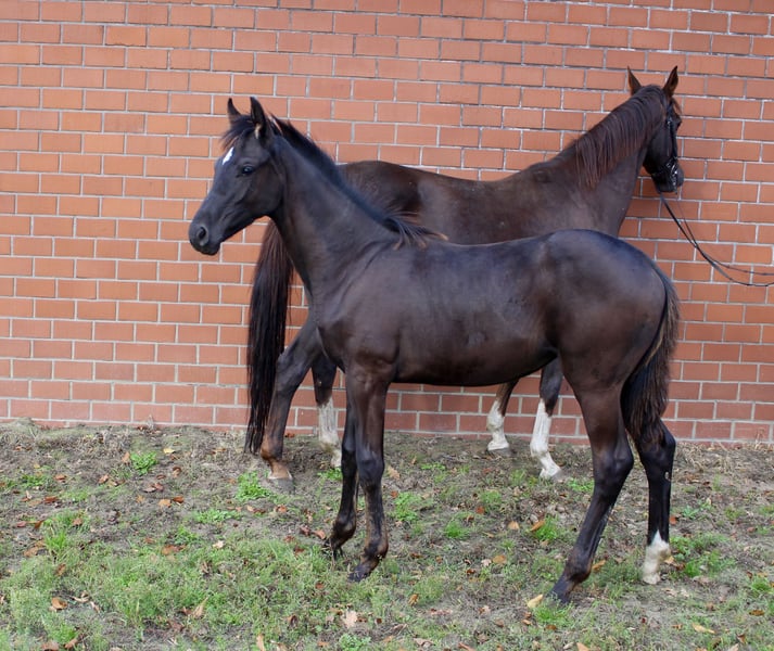 Attention dressage enthusiasts! Beautiful black-brown prospect foal sired by the internationally successful Dante Weltino. This filly has everything dressage riders desire: plenty of elasticity, always in rhythm, excellent conformation, and a top-class temperament. Whether for future breeding or the dressage arena, this foal will bring immense joy. The mare line of Badda traces back to Glocks Toto Junior, which needs no further explanation here. Also, Westminster, the sire of the legendary mare Weihaiwej, comes from this maternal line, as does the land-bred stallion Decurio from Moritzburg. For generations, this lineage has produced auction horses, successful broodmares, and top sport horses. Current video available Viewing possible by arrangement