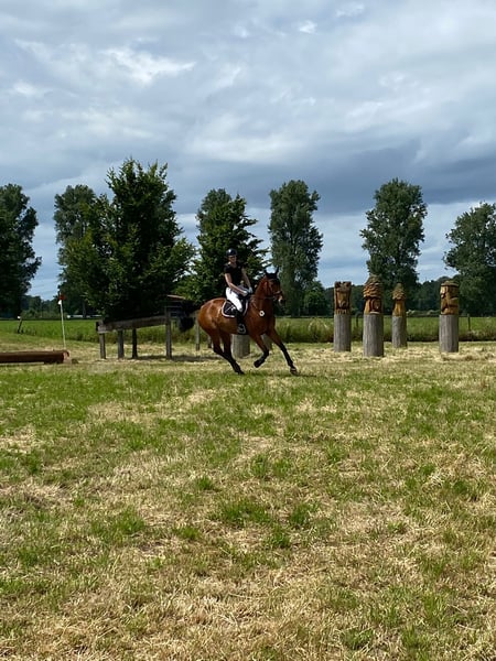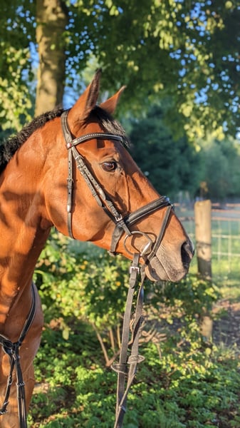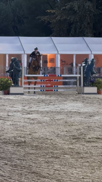 NEUES ZU HAUSE FÜR DAKATO GESUCHT Dakato ist ein 10-jähriger Wallach, 1,68m groß und aus eigener Zucht. Er stammt von Diacontinus x Silvio I ab. Mit seiner Mutter bin ich bis M gesprungen, sein Halbbruder geht M-Dressur. Die Linie hat eine tolle Einstellung, viel Herz und bringt dich immer ans Ziel. Dakato ist bei uns aufgewachsen und war immer bei uns, daher weiß ich, dass er nur Gutes erlebt hat und ein toller Partner ist. Er ist ein Allrounder: platziert bis M-Springen, A/L-Dressur, Gelände und lange Ausritte. In diesem Jahr waren wir in der Halle Münsterland und auf dem Schlossplatz in Münster beim Turnier der Sieger. Bei solchen Kulissen bleibt er trotzdem unbeeindruckt und souverän. Dakato bringt drei tolle Grundgangarten mit und einen „praktischen Galopp“, der sowohl in Stilspringen als auch Zeitspringen ein Schleifchen sammelt. Es könnte gut passen, wenn: - du Abwechslung magst - ausreiten, longieren, ohne Sattel reiten, ... - dir typische Wallache gefallen - aufmerksam, gute Arbeitseinstellung, verschmust - du ein sicheres Turnierpferd suchst, das dir auch mal einen Fehler/ eine schlechte Distanz verzeiht Videos stelle ich bei Interesse gerne zur Verfügung. Wenn alles passt, kommt es mir nicht auf den letzten Euro an. Mir ist wichtig, dass Dakato gut untergebracht ist.