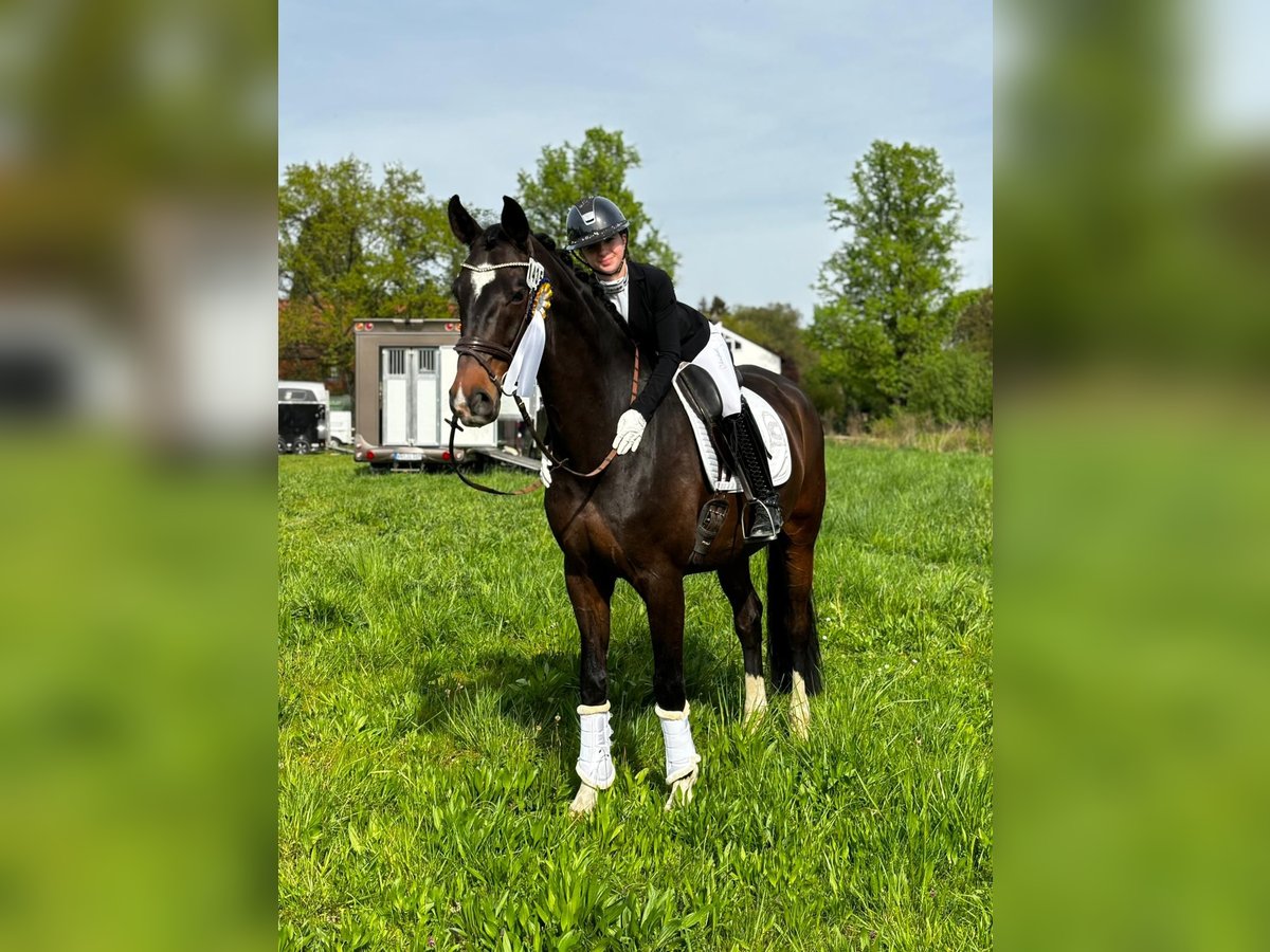 Year of Birth: 2015 Color: Bay Height: approximately 17.3 hh This expressive Oldenburg gelding by Fürst Wilhelm x Fidermark impresses with excellent rideability and consistently good performances: * Over 30 wins and placings in dressage competitions at L level with scores up to 8.1 * M* placed and ready for M** level * Member of the Children’s State Squad, participant in regional championships, and the Schafhof Youth Festival An ideal horse for children or riders transitioning to higher levels. Always motivated, light to ride, and reliable both in daily training and at competitions. Health: TÜV (veterinary check) conducted four years ago with no notable findings (a current TÜV can be arranged upon request) Price: The asking price is at the higher end within this category.