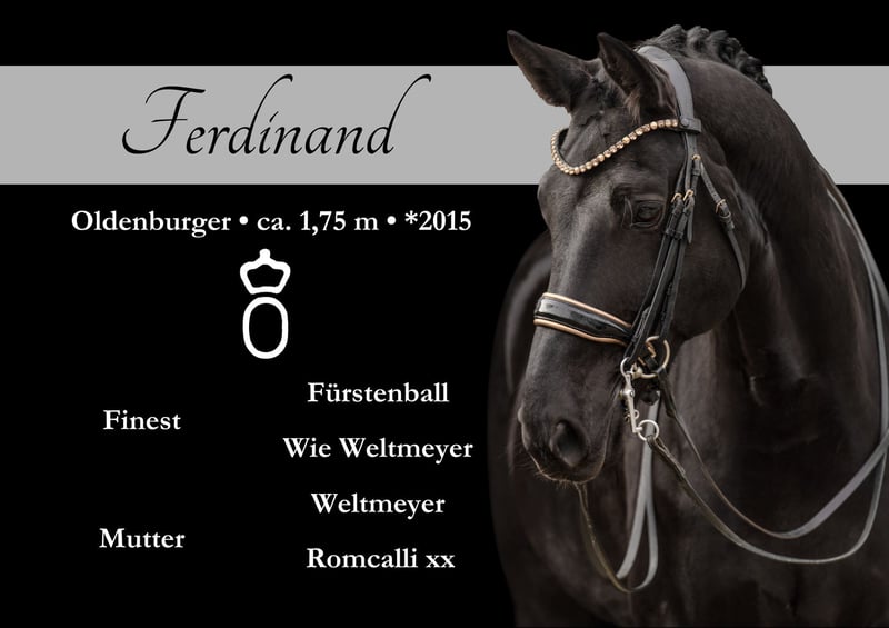 Liebe Interessenten, Für Terminvereinbarungen Probereiten senden Sie mir bitte eine WhatsApp. Für weitere Fragen bin ich tagsüber per WhatsApp erreichbar, telefonisch erreichen Sie mich am Besten zwischen 16 und 19 Uhr. Ich freue mich auf eine Kontaktaufnahme www.angelina-devittorio.de ⭐️Ferdinand⭐️ Alter: 10 Jahre (2015) Größe: ca 1,75m Abstammung: Finest x Rotspon Ausbildungsstand: S* siegreich AKU: Gute Röntgenbilder vorhanden Traumhaftes Dressurpferd – Lackschwarzer Wallach S siegreich ✨ Zum Verkauf steht Ferdinand, ein im Hengsttyp aufgemachter, lackschwarzer Sohn des Finest aus einer Weltmeyer-Mutter. Dieser traumhafte Wallach ist siegreich bis S* und verfügt über zahlreiche weitere Platzierungen in diesem Bereich. Ferdinand überzeugt nicht nur durch seine hervorragende Grundqualität, sondern ebenso durch seine Lektionssicherheit, seine Rittigkeit und seinen absolut liebenswerten Charakter. Er ist ein ausgesprochen menschenbezogenes Pferd, das seinem Reiter jeden Tag Freude bereitet und stets gefallen möchte. Er ist sehr leicht und angenehm reiten – auch auf Trense – und eignet sich aufgrund seines Wesens und seiner Rittigkeit ideal für Junioren. Ferdinand ist seit vierjährig in einer Hand und wird nur schweren Herzens in allerbeste Hände abgegeben. Im Gelände zeigt er sich brav, nervenstark und unerschrocken und ist für jeden Spaß zu haben. Ferdinand ist absolut amateurtauglich, ein fördernder Platz – gerne auch bei einer talentierten Juniorin – wäre wünschenswert. Zudem liegen gute Röntgenbilder vor Videos versende ich gerne auf Anfrage per WhatsApp 0491713438949 ⚜️Tel: 0171-3438949 ⚜️a.devittorio@web.de ⚜️https://www.ehorses.de/angelinadevittorio Facebook und Instagram Angelina De Vittorio