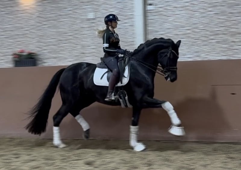 Dear Interested Parties, Please send me a WhatsApp message to arrange an appointment for a trial ride. During the day, I am reachable via WhatsApp for further questions, and the best time to call is between 4 and 7 p.m. I look forward to hearing from you. www.angelina-devittorio.de ⭐️Ferdinand⭐️ Age: 10 years (2015) Height: approximately 17.1 hh Pedigree: Finest x Rotspon Training level: Successful up to S* level X-ray: Good radiographs available Dreamy dressage horse – jet-black gelding, successful in S* level competitions ✨ Ferdinand is a striking jet-black son of Finest out of a Weltmeyer mare, presented in stallion type. This stunning gelding has competed successfully up to S* level and has numerous other placings in this class. He impresses not only with his excellent basic qualities but also with his consistent work ethic, rideability, and absolutely lovable character. Ferdinand is a very people-oriented horse who brings joy to his rider every day and always strives to please. He is very easy and pleasant to ride – even in a snaffle bit – and, thanks to his temperament and rideability, is ideally suited for junior riders. Ferdinand has been handled since the age of four and is being sold only due to owner’s personal circumstances, to the best of hands. In the outdoor terrain, he is well-behaved, brave, and fearless, ready for any fun. Ferdinand is absolutely suitable for amateur riders; a supportive placement, perhaps with a talented junior, would be ideal. Good radiographs are available. Videos can be sent upon request via WhatsApp at +49 171 3438949. ⚜️Phone: 0171-3438949 ⚜️Email: a.devittorio@web.de ⚜️https://www.ehorses.de/angelinadevittorio Facebook and Instagram: Angelina De Vittorio
