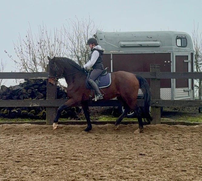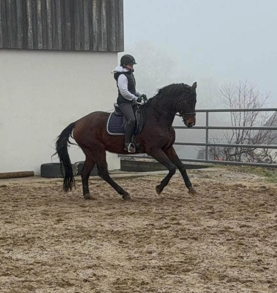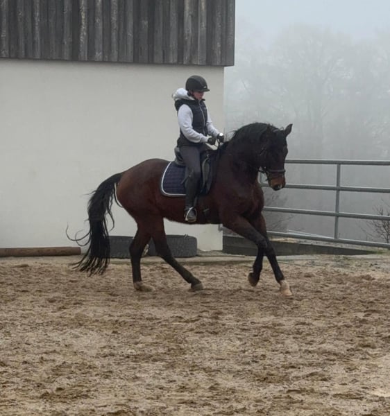 For sale is an absolutely wonderful Oldenburg gelding born in 2014, approximately 17.5 hands (Franziskus x Samarant). He is highly trained and has competed successfully in dressage up to S*** level, winning competitions up to class S*. He previously suffered a tendon injury, which has fully healed, and he is currently being gradually re-trained. This is reflected in his asking price. He is very well-behaved both on the ground and under saddle, making him an excellent school horse, especially suitable for young riders. We envision him primarily as a leisure and training horse. Currently, he lives in a mixed herd in an open stable and gets along perfectly well with others. A recent video is available. The price will increase with further training and once a new veterinary exam (TÜV) has been completed! Price range: €20,000 – €30,000 No known illnesses or allergies. For trial riding, pre-riding, or other tests, we charge €35, which will be credited upon purchase. Please feel free to call or send a message: 0157 36803742. All information is provided without guarantee. Price is subject to change. Transport possible. Online purchase available.