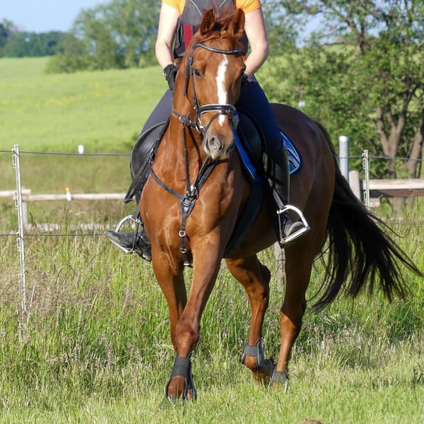 The horse was purchased seven years ago for my adult daughter and has been ridden extensively by us, including in the field. She has been abroad for a year and a half, and I don’t feel comfortable handling him alone as I believe I should with this hobby. Since I cannot foresee when she will return, I have made the difficult decision to find him a good new home. He has three very nice basic gaits, some experience in eventing, and a significant jumping ability, which, however, requires some convincing. As he is more of a Ferrari type, it’s crucial to keep him calm while riding. The rider needs to work primarily with their body and less with the reins, as otherwise he tends to evade rein pressure and may roll up. For this reason, this horse is definitely not suitable for children or beginners. He also enjoys testing his dominance from time to time. This gelding has a lot of energy, which can sometimes be released in bursts. However, he is very attentive during lunging and never pressures the handler. When ridden, he tries very hard not to buck. He is generally somewhat cautious. He is also very affectionate and enjoys cuddling; he wants to please and do everything right. He is familiar with dressage work, jumping, ground work, lunging, trail riding, anti-spook training, and long reining. I am looking for someone willing to take on this challenge, and in the right hands, he is a real diamond in the rough. He is in excellent health, and the location is more important than the price.