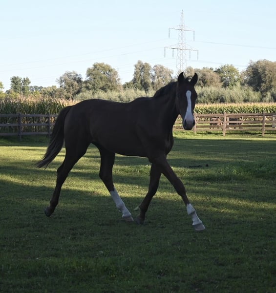 Top prospect for the dressage arena, growing, elegant yearling, already a gelding due to mixed herd, very well raised, always well fed and mineralized, no extensive rearing, very easy to handle, good with the farrier and vet, looking for HIS place, our horses have daily contact with humans. 3 real good basic gaits, not hypermobile, can also canter and walk. Very rideable lineage. Can also stay here for further rearing! Contact: Andrea Pollich, Tel: 0049-1755252297, e-mail: ostpol@t-online.de