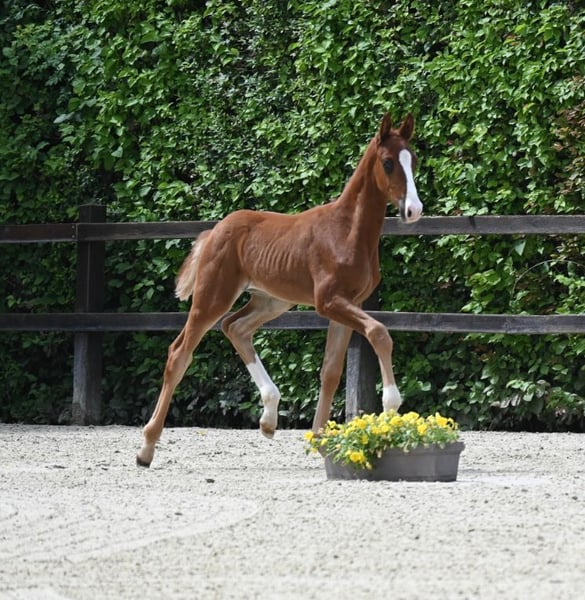 Topaanwinst voor het dressuur, groeiende, elegante jaarling, al castraat, omdat hij in een gemengde kudde is opgegroeid, zeer goed opgevoed, altijd goed gevoed en gemineraliseerd, geen extensieve opfok, zeer goed in de omgang, bij de smid en dierenarts, zoekt ZIJN plek, onze paarden hebben dagelijks contact met mensen. 3 reële goede basisgangen, niet hypermobiel, kan ook galop en stap. Zeer rijdelijke afstamming. Kan hier ook blijven voor verdere opfok! Contact: Andrea Pollich, Tel: 0049-1755252297 e-mail: ostpol@t-online.de
