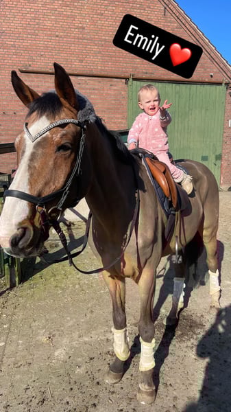 Mooie, lieve ruin zoekt een nieuw thuis Onze “Opi” is topfit en doet nog menig 3-jarige verbleken. Hij is volledig rijdbaar en vormt zowel in het buitenrijden als op de piste een betrouwbare partner. Dressuur is niet per se zijn favoriete discipline, maar springen doet hij des te liever. Hij is al tot A** klasse geplaatst. Tot vorig jaar heb ik nog regelmatig springles met hem gevolgd. De enige reden voor herplaatsing is tijdgebrek, omdat we in totaal vijf paarden hebben en ik hem simpelweg niet meer de aandacht kan geven die hij verdient. Over hem: - Gezond en fit - Heeft hoefijzers nodig, omdat hij anders zijn hoeven te kort loopt - Absoluut kindvriendelijk – onze meisjes zijn al op 2-jarige leeftijd met hem op stap geweest - Ook bij onbekenden zeer braaf en vriendelijk - Hoefsmid, laden en trailer rijden vormen geen enkel probleem – hij rijdt er zelfs graag mee Ik hoop dat hij een liefdevol thuis vindt waar hij goed verzorgd en gewaardeerd wordt. 💰 Prijs: - €3.000 VHB zonder accessoires - Zadel en halster kunnen voor €1.500 extra worden overgenomen (hoogwaardige kwaliteit, geen goedkope accessoires).