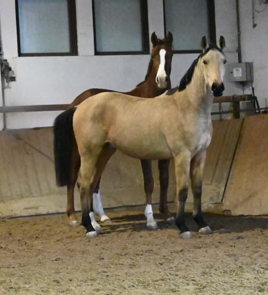 knapp 2- jähriger Sohn des Qandide aus einer hochprämierten Rock Forever x Florestan x Donnerhall Mutter, die selber bis DPM siegreich war und DSP Prämienstute Sport ist. Liebevoll sehr gut aufgezogen mit top Mineralisierung und Haltung, er verfügt über 3 reele Grundgangarten, nich hypermobil, ist sehr umgänglich im Handling, beim Hufschmied und TA, kennt führen. Wir wünschen uns für Ihn DEN neuen Besitzer, wo er Freude machen kann. Er kann auch gern zur weiteren Aufzucht hier bleiben. Kontaktaufnahme: Andrea Pollich, Tel: 0049-1755252297 e-mail: ostpol@t-online.de - aktuelles Video gern per whatsapp