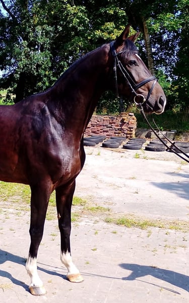 Der Wallach ist ein unkomplizierter und besonders liebenswerter 3j., der eine hohe Grundqualität in allen drei GGA besitzt. Besonders hervorzuheben ist sein schwungvoller, lockerer und taktreiner Trab. Dieser und seine hervorragende Rittigkeit qualifizieren ihn für eine erfolgreiche Karriere im höheren Dressursport. Für ihre qualitativ hochwertigen Nachkommen erhielt seine Großmutter den Titel: "Elitestute". U.a. ist ein Bruder von dem Wallach Mutter bis Inter II erfolgreich. Seine Bereiterin ist besonders beeindruckt von seinem sehr guten Charakter. Erst seit Juni in Beritt, zeigt sich der Wallach stets arbeitsfreudig, unkompliziert und zuverlässig, was besonders dadurch deutlich wird, dass sie ihn im Gelände reitet. Im Umgang ist er ein Schatz und er stand bisher mit Wallachen und auch Stuten zusammen, wobei er sich sehr sozial zeigt. Auch beim Freispringen ist er geschickt und motiviert. Der Wallach ist ein Pferd, welches keine Wünsche offen lässt, sogar ein Röntgen TÜV o.b.B. incl. Hals und Rücken liegt vor. Wir erheben KEINE Gebühren fürs Probereiten sondern freuen uns über Ihren Besuch.