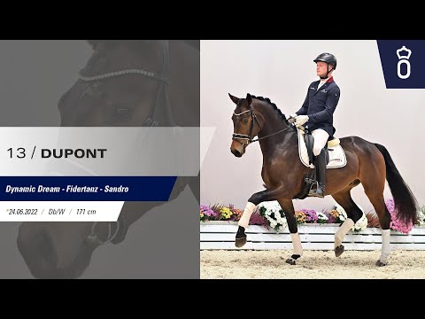 Highly promising dressage young horse, still heavily influenced by his grandsire, with a high rideability and excellent basic gaits. His sire, Dynamic Dream, was the champion stallion of his licensing. His dam's sire, Fidertanz, is one of the most reliable Grand Prix horse producers of modern times.
