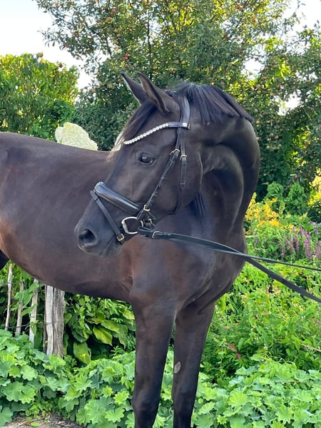 A stylish type in a dark jacket who knows how to enchant! He was born this spring and has the charisma of a stallion. He has spent the last few months in a paddock with a group of stallions and has also grown up in a herd with us before. We have now started his training as a riding horse and are looking for someone to continue his development. Current vet check available. We look forward to your call.