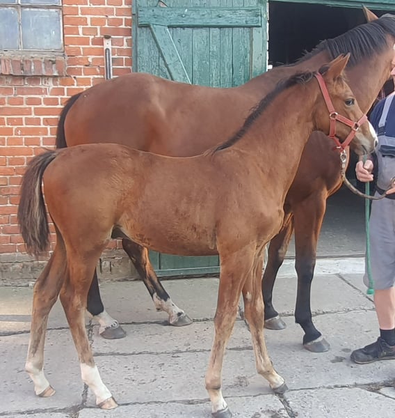 Typical, chic and long-legged colt, which has everything for show jumping. Correct on the legs, good joints, 3 very good basic gaits, curious and powerful. He didn't just inherit his father's looks. Well behaved, knows lead rope and farrier. Jumping is in his blood. Sire "Lordanos" is a guarantor for maximum performance inheritance! This strain has been the most successful in the world for several years. The dam's sire "Landor S" is another very great show jumper sire in the pedigree. Dam's sire "Saint Cyr/T." refreshes the pedigree. His offspring are very versatile and successful in riding horse, dressage, jumping and aptitude tests. This comes from his father "Kostolany". His offspring are characterized by an excellent interior, high rideability and a pronounced double talent for jumping and dressage. "Kostolany" is the father of "Gribaldi" and thus grandfather of "Totilas".