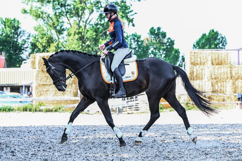 In opdracht van eigenaar Tortuga GW Zeer knappe en talentvolle ruin, dressuur gefokt maar haalt veel plezier uit het allround bezig zijn. In Januari van dit jaar in alle rust zadelmak gemaakt en daarna rustig aan door gereden, gaat mee naar springles en crosstraining en vind dit ook erg leuk, geniet ook echt van buitenritjes daarom denken wij dat hij het beste tot zijn recht komt bij iemand die heel allround met hem aan de slag wilt en hem in alle rust verder zelf wilt opleiden tot top sport paard. Hij komt wel het beste tot zijn recht bij een rustige fanatieke gevorderde ruiter, is wat sensiebel onder het zadel, al groeit hij hier echt wekelijks in, maar niet geschikt voor beginners of angstige ruiters. Hij heeft altijd veel looplust en echt zijn dagelijkse beweging nodig, staat bij ons overdag op de paddock en in de nacht op stal, heeft afgelopen zomer ook 24/7 buiten gestaan op de wei met andere jonge ruin. Aan de hand, bij de hoefsmid, dierenarts, chiroprakter, met scheren enzv. super braaf. Staat nu zonder ijzers maar heeft van de zomer ook voorijzers gehad met stiftgaten voor eventing training, gaat iedere 8 weken naar de hoefsmid. Afgelopen maart laatste keer gebit gedaan. 1,5 jaar geleden rontgen en klinsch goedgekeurd. Overkeuren mag, kosten koper. We zoeken voor hem echt een 5* huisje, geen handellaren aub!