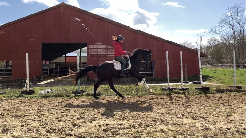 For sale is a very charming Oldenburg gelding from first hand. Feivel is 4 years old and has a height of 16.1 hh. Pedigree: Feinrich x Fürst Nymphenburg He was gently backed at the age of three and impresses with his excellent attitude towards work and consistently positive development. Under saddle, he is well-behaved and uncomplicated, yet still a young horse with plenty of potential for growth. Character-wise, Feivel is a real gem: affectionate, friendly, and very cuddly – a horse that quickly forms a close bond with its handler. In terms of training, Feivel is currently at a good level of dressage training, progressing from A to L level. He has already gained some first competition experience. He scored a win in his first riding horse test and placed third in his first dressage horse class at A level. He offers excellent prospects as a promising young horse for an ambitious rider. Feivel is a wonderful horse for the future, both in sport and as a reliable partner for daily training. Serious inquiries are welcome; we look forward to your call.