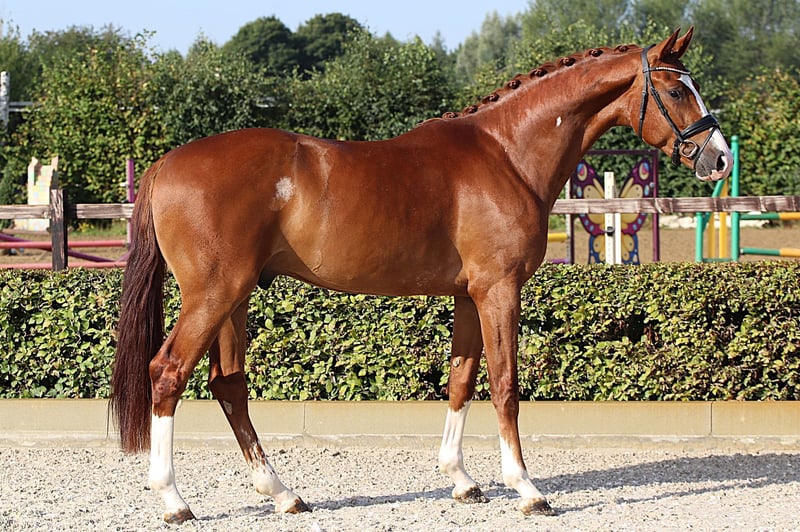 Oldenburger Wallach, geboren 2022, abstammend von Bon Coeur x Livaldon. Ein Nachwuchspferd, dass nicht nur durch seine Qualität, sondern auch durch sein auffälliges Erscheinungsbild beeindruckt. Dieser Wallach zeigt sich nicht nur brav unterm Sattel, sondern konnte sich bereits in Reitpferdeprüfungen gut platzieren. Ein interessanter Partner für den ambitionierten Dressurreiter. Bei Interesse stehe ich gerne für weitere Informationen und eine Besichtigung zur Verfügung.
