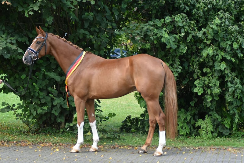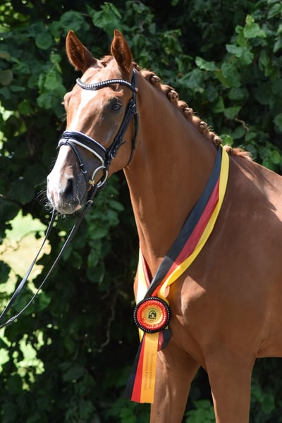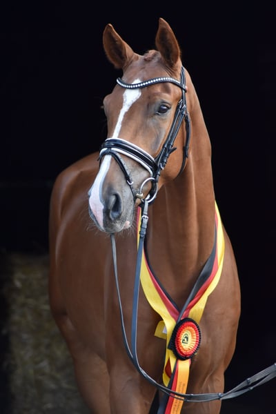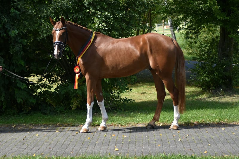 Ce jeune hongre remarquable a été débourré en douceur et a été présenté une fois en concours. Il s'est également classé dans l'épreuve pour chevaux de selle. Il a convaincu par ses 3 allures et sa facilité sous la selle. Au contact et sous la selle, le hongre se montre toujours aimable, docile et sensible. A céder directement par l'éleveur. Si vous êtes intéressé ou si vous avez des questions, n'hésitez pas à nous contacter par téléphone au 0170/8159909 du lundi au vendredi de 8h à 17h.