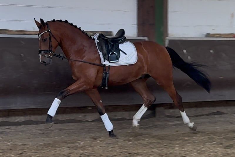 A beautiful likeness of the maternal grandfather Zoom! A colorful, expressive, and athletic stylish 2.5-year-old youngster, who is also double-bred through both sire and dam and possesses an absolutely dream character! Born in December 2022, he officially belongs to the 2023 foal crop and is now slowly being started under saddle. He is already accustomed to rider weight at walk/trot/canter, and is super well-behaved and light to ride! He impresses daily with his teachable and balanced nature. Extremely kind and uncomplicated in handling. He is descended from our licensing champion, BuCha finalist, and HLP winner "Cafe au lait," who has been drawing attention for some time with his incredibly successful offspring in dressage and show jumping. One of the few sires who can boast numerous successful offspring in both disciplines up to the advanced level! For example, "Cafe's Casimir" (Cafe au lait x Calido x Grannus) was the celebrated top price at the Oldenburg Elite Auction, is already a series winner in young dressage horses M at a young age, and at 7 years old is again a series winner in his first S dressage tests! He is now successful in international Intermediaire I. The mare Kasselmann's Cafe's Caletta (Cafe au lait x Calato) is already successful in S** dressage and international Grand Prix. Cafe's Matts (Cafe au lait x Don Frederico) was the second most expensive dressage horse at the Oldenburg Summer Mixed Sales. Other young horses from jumping-focused dams have already been placed multiple times in dressage tests A to M and are remarkably athletic and clear-minded. There is no doubt that the Cafe au lait offspring excel in show jumping up to the advanced level, such as from our breeding: Cafe's Champus: licensed, vice world champion of young horses, now in breeding in Russia Cafe Junior: licensed, internationally successful in Saudi Arabia Cafe's Columbo: licensed and sport-successful in France Cafe's Don Rubin: licensed, at 4 years old the youngest horse to win bronze at the Dobrocker Deister Championship, multiple winner in show jumping L and qualified for BuCha. Cafe au lait himself was a Bundeschampionat finalist under Philipp Weishaupt and has been successful up to S*** show jumping, but is also equipped with three spectacular gaits and has been trained to S level in dressage. Stationed at Paul Schockemöhle, he has already sired numerous internationally successful show jumpers, including "Royce" (Cafe au lait x Grandilot), successful in the FEI CSI5* $500,000 Rolex Grand Prix Wellington. Our foals receive daily mineral feed and foal starter, regular EQUISTRO Haemolytan and Ipaligo Foal, deworming, and farrier care are of course also standard. The mares receive special mare feed, juice feed, linseed oil, and hay ad libitum throughout the entire pregnancy. Thus, our breeding mares and their offspring are always well cared for and in top health! Trade-in of a suitable breeding mare is possible. Further foals and young horses from our own breeding are available upon request. Some can be found in other listings. We have about 20-25 Cafe au lait foals each year. There are also always a few pregnant breeding mares for sale. Video inquiries, etc., are only possible in advance via WhatsApp! Cafe's Zazoom already has a current very good radiographic TÜV.
