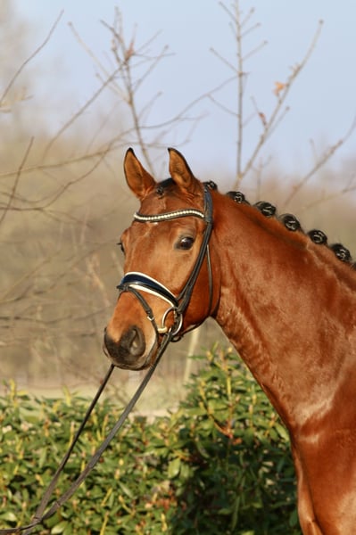Du suchst den einen besten Freund? Hier ist er! Dieser wunderschöne braune Wallach beeindruckt durch sein freundliches Wesen sowie seine beeindruckende Erscheinung. Wir haben wirklich selten so ein liebes, charmantes und vor allem positives Pferd erlebt. Zudem ist er mit einem sehr guten Bewegungspotential ausgestattet und versucht dem Reiter immer alles recht zu machen. Bei uns behutsam aufgewachsen haben wir ihm viel Zeit zu Reifen gegeben. Er ist jetzt ca 9 Monate in Arbeit und entwickelt sich zusehends immer positiv weiter, so daß man keine Phantasie mehr braucht wo die Reise mal hingehen kann. Mit seinem überragenden Bewegunspotential hat er alle Möglichkeit als zukünftigen Dressurstar voll durchzustarten. Er macht einfach jeden Tag Spaß und zaubert einem immer ein Lächeln ins Gesicht. Bei Interesse stehe ich gerne für weitere Informationen und eine Besichtigung telefonisch zur Verfügung. Kontaktieren Sie mich, um mehr über dieses vielversprechende Pferd zu erfahren!