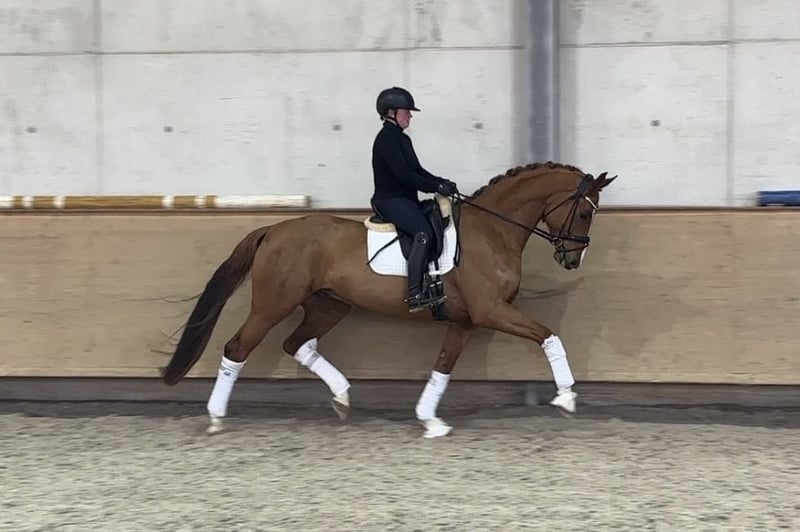 ✔️Alter: 5 Jahre (2021) ✔️Größe: ca 1,70 m ✔️Abstammung: Bonds x De Niro x Stedinger ✔️Ausbildungsstand: Dressurpferde A ✔️AKU: Gute Röntgenbilder vorhanden, da er im Schritt eine leichte Auffälligkeit im Gangbild hat, wird sehr weit unter Wert verkauft. Diese schränkt ihn in keinster Weise ein. ✔️Standort : Gestüt Schorer, Frankenhofener Str. 3, 86860 Jengen/Weicht Ein echter Hingucker mit besonderer Ausstrahlung. Der bunte Fuchswallach überzeugt mit seiner außergewöhnlichen Zeichnung: viermal hochweiß, dazu eine schöne Blässe und dunkle Flecken am hinteren Rücken – ein Pferd mit hohem Wiedererkennungswert. Er ist harmonisch im Rechteckformat angelegt und dabei schön bergauf konstruiert, mit einem korrekten, sportlichen Körperbau. Unter dem Sattel zeigt er tolle, lockere Bewegungen. Altersentsprechend ist er noch nicht viel geritten, dabei aber von Anfang an sehr unkompliziert, brav und ehrlich. Aktuell befindet er sich auf einem soliden Dressurpferde-A-Niveau und macht hier alles gelassen und mit Freude mit. Im Umgang ist er ein absoluter Kumpeltyp: freundlich, menschenbezogen und angenehm in jeder Situation. Er ist sehr verträglich mit anderen Pferden und kennt Koppelgang, Führmaschine, Ausreiten sowie den normalen Reitalltag. Auch beim Ausreiten zeigt er sich zuverlässig und unerschrocken. Der Wallach ist schmiede- und verladefromm. Auf dem aktuellen Video läuft er barhuf, trägt also derzeit keine Eisen. Selbstverständlich ist er regelmäßig entwurmt und geimpft, ein aktueller, guter TÜV liegt vor. Der Vollständigkeit halber weisen wir darauf hin, dass er im Schritt eine leichte Auffälligkeit im Gangbild zeigt, die stellenweise an einen milden Hahnentritt erinnert. Diese Besonderheit ist rein optischer Natur, zeigt sich ausschließlich im Schritt und schränkt das Pferd in keiner Weise im reiterlichen Einsatz ein. Aus diesem Grund wird das Pferd bewusst zu einem sehr fairen, kostengünstigen Preis weit unter Wert angeboten. Gesucht wird ein gehobener Amateurreiter, der ein ehrliches, unkompliziertes Pferd für den täglichen Spaß an der Dressur sucht – ebenso geeignet als verlässliches Freizeit- und Verlasspferd.