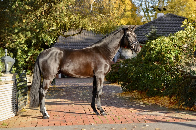 Ein Traumpferd in jeder Hinsicht: Wer Ben sieht, ist begeistert: Sein Charisma, seine Ausstrahlung, seine Rittigkeit, seine Qualität - ein absolut komplettes Pferd, das alles mitbringt für den großen Sport: Schwung, Takt, Elastizität, top Galoppade und sehr guter Schritt - und das alles noch jugendlich frisch, erst ein paar Monate unter dem Sattel, mit wunderbarer Rittigkeit und top Temperament. Wir meinen: Ein Traumpferd! Dieser nun vierjährige Glanzrappe stammt ab vom Siegerhengst Bellany, der in seiner HLP u.a. für die Rittigkeit 9.0 bekam und in seiner ersten S-Saison bereits Siege feiern konnte. Muttervater Millennium hat zahlreiche Top Hengste und Grand Prix Pferde geliefert, ein Vollbruder zu Ben’s Mutter ist in Amateurhand S-erfolgreich. Der Stamm ist nach klassischem Oldenburger Erfolgsrezept Donnerhall-Pik Bube weiter gezogen und hat top Dressursportler wie u.a. Grand Prix Hengst Don Primaire hervor gebracht. Wer das besondere sucht - Charme, Schmelz, Qualität, Rittigkeit und Temperament - der wird Ben lieben. Erst im Dezember kastriert, hat er einen herrlichen Hengst-Ausdruck behalten. Dabei immer cool und einfach ein Traum im Umgang. Digitaler Röntgentüv vorhanden. Standort: 49377 Vechta