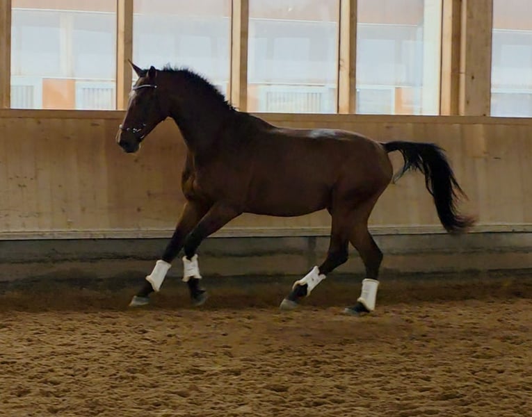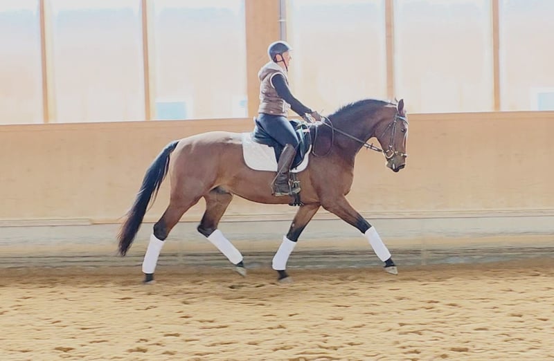 Cheval de 4 ans expressif avec un caractère exceptionnel, une lignée prometteuse et un socle solide *** 25 000 € VB *** Âge : *2021 Taille : environ 1,72 m Origines : Quality Control × Ehrentusch Niveau de dressage : Monté ECG : Radiographies sans anomalies, y compris du dos, disponibles Lieu : 86972 Altenstadt Ce magnifique cheval de 4 ans (Quality Control × Ehrentusch) allie qualité, facilité de monte et un caractère exceptionnellement doux et clair. « Quatschkopf » est arrivé brut de l’élevage et a été préparé avec soin et patience cet été, puis monté en dressage. Il impressionne d’emblée par sa présence élégante et son harmonie globale. Sous la selle, il montre déjà une bonne équilibre et est agréable à monter. Il donne au cavalier, même en début d’apprentissage, une sensation de confiance. Ses mouvements sont elastiques, bien cadencés et de grande qualité fondamentale. Grâce à sa facilité de monte, il procure aussi à un amateur une expérience agréable à cheval. En manège, Quatschkopf se distingue par son tempérament amical, équilibré et totalement clair. Il aime travailler avec l’humain et connaît un travail de sol varié, ce qui le rend sûr et fiable au quotidien. Nous souhaitons lui offrir un foyer qui lui donnera le temps et la tranquillité nécessaires à son développement harmonieux. Avec son caractère sincère et son potentiel, c’est un partenaire fiable qui saura apporter de la joie dans toutes les disciplines. Radiographies sans anomalies, y compris du dos, disponibles de l’été. Il marche sans fers, est sage avec le maréchal-ferrant et est facile à charger. Très sociable avec des hongres et des juments. Ses dents ont été régulièrement traitées, et il a été régulièrement déparasité. Contact par WhatsApp ou téléphone : 0176 81689702
