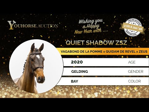 Quiet Shadow ZSZ ist ein fünfjähriger Wallach mit einer Größe von 1,74 m, der als sehr angenehmes Amateurpferd überzeugt. Er zeigt eine gute Einstellung, ist leicht zu reiten und springt mit viel Sprungkraft, wobei er stets vorsichtig ist. Er vermittelt dem Reiter ein sehr gutes Gefühl und wirkt unkompliziert. Er geht gut an die Stange und zeigt deutlich mehr Springvermögen, als sein aktuelles Niveau erfordert. Trotz seines Alters ist er noch etwas unerfahren, was vor allem auf die begrenzten Einsatzmöglichkeiten zurückzuführen ist. Der Züchter hat ihn behutsam aufgebaut. Bisher hat er bis 90 cm Turniere absolviert. Vater ist Vagabond de la Pomme, nach Vigo d’Arsouilles, der selbst bis 1,60 m im Großen Preis erfolgreich war und die Weltcup-Finals in Las Vegas und Göteborg gewann. Er ist bekannt dafür, Qualität, Mentalität und Vorsicht zu vererben – Eigenschaften, die bei Quiet Shadow ZSZ deutlich sichtbar sind. Die Mutterlinie ist stark und bewährt. Die Mutter Quiet Magic (von Quidam de Revel) hat selbst bis 1,55 m auf Turnieren gezeigt und konnte mehrere CSI3*-Platzierungen erzielen. In der weiterführenden Linie finden sich zahlreiche internationale Springpferde zwischen 1,40 und 1,60 m, darunter Gavina (1,60 m), Langberg (1,60 m) und Langester de Trivera (1,60 m). Diese Familie ist bekannt für ihre Langlebigkeit und sportliche Leistungsfähigkeit, was das Potenzial dieses Pferdes unterstreicht. Quiet Shadow ZSZ ist ein ehrliches, leicht zu reitendes Pferd mit viel Blut und Sprungvermögen, das sorgfältig aufgebaut wurde und noch deutlich Entwicklungspotenzial bietet.