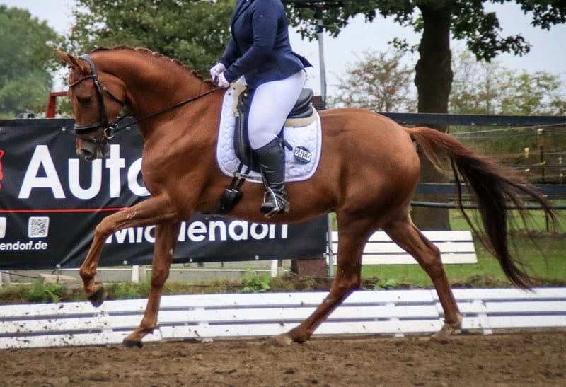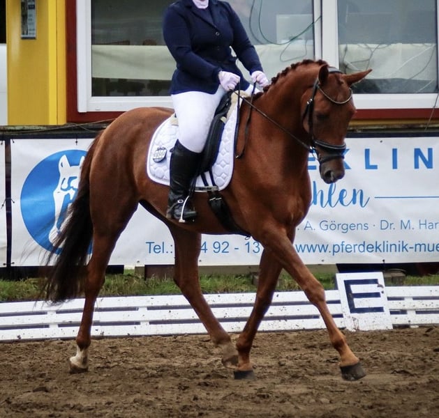 Oldenburger Wallach – 5 Jahre – 1,72 m – A-Dressur fertig Abstammung: Fürst Toto x San Remo x Noble Roii xx Zum Verkauf steht Fürst San Marino, ein ausdrucksstarker und rittiger Oldenburger Wallach mit top Abstammung und sehr guten Grundgangarten. Er wurde bereits auf Turnieren vorgestellt und ist A-Dressur-fertig. Unter dem Sattel zeigt er sich motiviert, brav und angenehm zu reiten – auch im täglichen Umgang ist er freundlich, ausgeglichen und unkompliziert. Zweijährig hatte er eine Weideverletzung, die ihn heute in keiner Weise einschränkt. TÜV aktuell nicht vorhanden, kann aber bei Kostenübernahme durch den Käufer gerne gemacht werden. Zahnarzt ist vor kurzem (November 2025) da gewesen. Marino ist ein tolles Nachwuchspferd für Reiter, die sich einen verlässlichen Partner mit Perspektive. Bei Interesse oder für weitere Informationen einfach eine Nachricht schreiben.