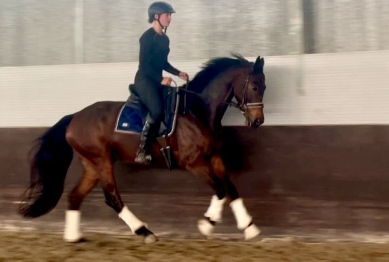 Levino ist ein bildschöner 6 jähriger ca 162 großer Wallach. Er ist ein mutiges und unerschrockenes Pferd, das seinem Reiter gefallen möchte. Levino ist mit guten Grundgangarten ausgestattet und macht bei der täglichen Arbeit sehr viel Freude. Das Springen wurde begonnen. Auch hier zeigt er Vermögen und Qualität, muss aber noch weiter gefördert werden. Er geht brav auf den Hänger und ist im gesamten Handling super simpel. Einfach ein sehr liebes Pferd. In seiner Ausbildung steht der Wallach noch ziemlich am Anfang und ist demnach für absolute Anfänger nicht geeignet. Dennoch ist er unkompliziert in der Bedienung und verzeiht Reiterfehler. Wer also einen echten Kumpel sucht, mit dem man zusammen wachsen kann, der ist bei Levino richtig. Pferd steht in Italien