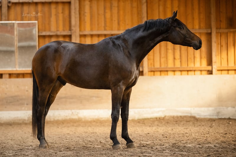 Cheval de dressage de haute qualité - absolument adapté aux amateurs - 6 ans *. À vendre, un cheval de dressage exceptionnellement gentil et de grande qualité, âgé de 6 ans, environ 1,75 m, issue d’une lignée prestigieuse avec Blue Hors Zackerey et Fidertanz. Le cheval est solidement dressé selon son âge, au niveau L. Le galop en extérieur est sûr, le travail aux changements de pied volants a déjà commencé. Connaît la bride à double mors, ainsi que les sorties en extérieur / terrains vagues. ** Caractère et maniabilité : Un cheval de rêve absolu – son caractère est de 12 sur 10. Courageux, honnête, extrêmement gentil et sans aucune mauvaise habitude. Facile à monter, pas du tout chaud. Totalement adapté aux amateurs, également très bien pour les para-équestres. Toujours exemplaire en compétition, calme, obéissant et pas du tout regardant. ** Santé : Certificat vétérinaire sans anomalies, tant cliniques que radiographiques. Un cheval que l’on aime tout simplement et qui donne en permanence confiance à son cavalier. !! Prix sur demande et vidéos disponibles sur demande. Gamme de prix élevée ! Le cheval n’est pas fourni.