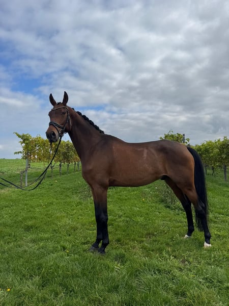 Franklin impresses with his elegant appearance, exceptional movement, and remarkable willingness to perform. This typy Oldenburg stallion (approx. 172 cm) consistently demonstrates motivation and talent for the higher levels of dressage. With his light-footed, expressive movement and high aptitude, Franklin leaves nothing to be desired – a true dressage horse for the big arena! He is placed in Dressage Horse Class A and has completed L-level training, providing an excellent foundation for his further sporting development. In handling, Franklin is an absolute sweetheart: shoe and loading friendly, well-behaved, and reliable in daily training. A dream horse for the discerning amateur or professional rider seeking a talented dressage horse with potential.