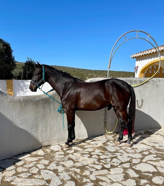 Favorit KK is a modern, large-framed and highly talented 6-year-old Oldenburg gelding (2019, approx. 175 cm), bred from proven performance bloodlines (by Favorit Ask out of Carla CR, damline Ukase ter Putte / Diamant de Semilly). He combines scope, attitude and natural rideability at a high level. Currently successfully competing up to 1.25 m, he shows convincing potential at home for the bigger classes (approx. 1.45 m), with excellent overview, technique and carefulness on the jump. Under saddle, Favorit KK presents himself as a light and modern sport horse with a soft mouth and natural balance. He offers plenty of scope and “go” without becoming strong, remaining focused and honest at all times. What truly sets him apart is his mentality: calm, intelligent and consistent in his work. He adapts quickly to new situations and shows the mindset required for the higher levels of sport. In daily handling, he is uncomplicated and reliable. A very interesting prospect for an ambitious rider or professional aiming for the higher levels.