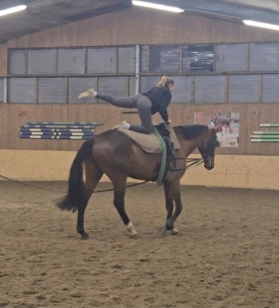 ✨ ,,Tabaluga,, Voltigierpferd/ gehobener Freizeitsport ✨ Sanfter Riese sucht neues zu Hause als Familienpferd, gerne auch im gehobenen Freizeitsport oder sogar als Voltigierpferd (dort absolvierte er sogar sein erstes Testtraining mit Bravour!!!) Tabaluga ist 2018 geboren und ca. 185 cm groß. Er überzeugt mit einem ruhigen, ausgeglichenen Charakter ohne Unarten und ist sehr menschenbezogen. Er genießt Ausritte sehr und ist egal ob alleine oder mit andern Pferden immer motiviert dabei, so auch bei der Arbeit auf dem Platz. Schmied, Tierarzt und Verladen stellen keine Probleme dar. Er ist platzierte Springprüfungen bis ca. 1,15 m gegangen und kennt somit Turnieratmosphäre. Für größere sportliche Aufgaben ist er jedoch nicht geeignet. Daher haben wir uns dazu entschieden den passenden Menschen für ihn zu suchen der ihm ein dauerhaftes, liebevolles zu Hause schenkt um mit ihm viele tolle Momente erleben zu können. Ein reiner Sportplatz ist nicht das Richtige für ihn – er sucht eher einen Partner oder eine Familie fürs Leben! Das Pferd wird im Auftrag angeboten. VHB 18000🥕 Standort - 23936 📍 Platz vor Preis – nur in gute Hände 📩 Bei ernsthaftem Interesse freuen wir uns über eine Benachrichtigung an 01735220378