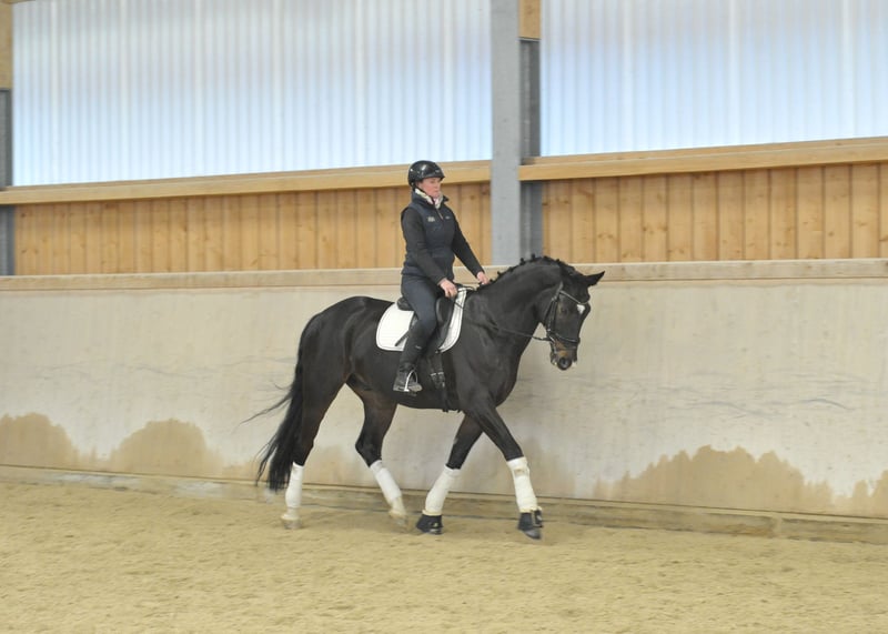 Schicker Allrounder mit Erfolgen und Platzierungen in den Klassen L+M ist er ein erfahrenes Dressurpferd und überzeugt in seinem Niveau, lektionssicher und mit super Einstellung. Als Empfehlung für den anspruchsvollen Dressurreiter ist er angenehm zum Reiten mit seiner traumhaften und bequemen Gallopade macht er das Taxieren sehr einfach.