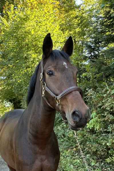 English On behalf of, this beautiful, kind-hearted gelding is looking for a wonderful new home. He is 9 years old, approximately 16.1 hands tall, and has a compact build. Character-wise, he is very gentle; he can be a bit shy around strangers, but once he has won your heart, he is a very loyal partner. He loves hacking out, where he can truly relax and enjoys it immensely. He is also fine riding alone. He is nice to ride in dressage as well. Due to his sometimes shy nature, he is not ideally suited for beginners. He has limited experience in jumping and will need some further training to develop more ambition. In handling, he is a real sweetheart; whether grooming at the tie-up, farrier work, or loading onto the trailer, Balou handles everything with ease. Balou impresses with his very attractive appearance, harmonious conformation, and good health. During a routine X-ray examination at age three, two small cysts were found in his left stifle joint; these are clinically harmless and of no significance. He has never been lame. Flexion tests and clinical examinations are all negative. Current X-ray images from 2025 and a veterinary report of the clinical examination are available. A clinical pre-purchase exam from 2024 with no findings is also on file. If you are looking for a handsome, compact all-rounder, please feel free to contact us at 01737482545. Feel free to reach out via WhatsApp or call directly.