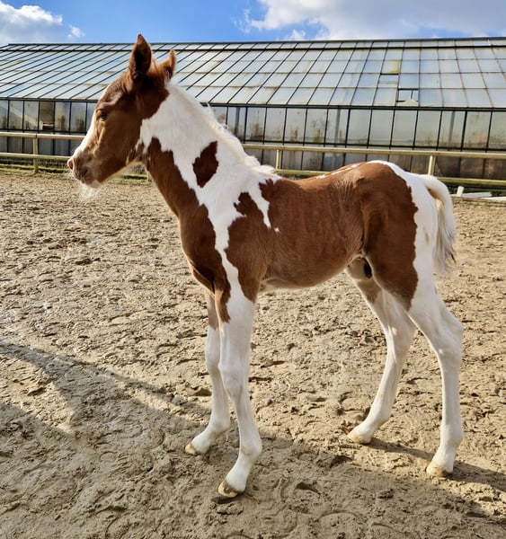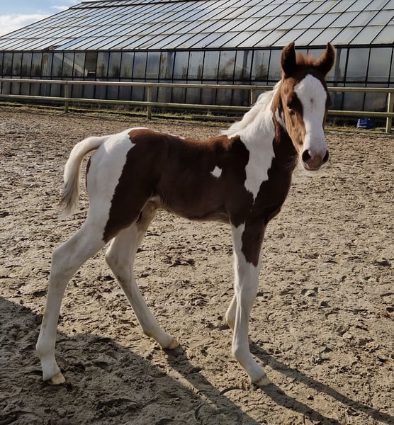 🔹 PHCG awarded & enrolled in the EWU Young Horse Program For sale is a promising and typy Paint Horse colt with top genetics for Reining, Ranch & Allround. “Spark,” born on 07.02.2025, showcases a clearly marked Tobiano coat pattern, harmonious conformation, and loose, powerful movements. 🔹 Pedigree: • Sire: Hollys Electric Spark – successful Reining stallion (NRHA), son of Jacs Electric Spark out of Shining Spark • Dam: SH Leoslucky Girl – foundation-oriented mare with correct conformation and athletic temperament ➡️ This pairing combines proven Reining performance lines with a lot of substance & charisma – ideal for sport or breeding. 🔹 What Spark offers: • PHCG awarded at the foal show 2025 • Enrolled in the EWU Young Horse Program • Well-mannered in handling: regularly halter-trained, good with hoof handling, trailer loading is no problem • Raised in a herd environment, familiar with pasture, paddock box, human contact, cars, tractors Spark has already taken his first outings in the area and shows himself to be fearless. 📍 Location: Dormagen - near Cologne / Düsseldorf 📅 Availability: from October 2025 📩 More photos or videos available upon request 📄 APHA papers & PHCG registration available Geissler Performance Horses “Bred with Passion – Raised for Purpose”