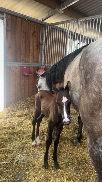 Zum Verkauf steht mein Selbstgezogenes Hengstfohlen, geboren im Juli 2025. Santino ist kerngesund, Lebensfroh und hat für sein Alter schon einiges erlebt. Führen, Hufe geben und auch als Handpferd im Gelände war er schon dabei und macht das alles super. Auch die Reithalle kennt er. Er steht momentan mit meiner anderen Stute mit Stutfohlen zusammen und ist somit Kontakt zu anderen Pferden in der Herde gewohnt. Durch die Größe der Eltern wird er sicher auch für Große Reiter Geeignet sein. Mutter: Kann besichtigt werden, Ungarisches Sportpferd, Springen Veranlagt, ca 1.64 groß, Apfelschimmel Vater: Whiz my Little Gun, Paint Horse, Fuchs Santino wäre sicher ein tolles pferd im Westernsport, aber auch unter dem Englisch Sattel kann ich ihn mir gut vorstellen, durch seine doppelte Veranlagung also für alles zu haben. Er ist neugierig, immer motiviert und lernt schnell. Er wird sicher ein super verlässlicher Partner. Ich gebe ihn nur in die besten Hände ab. Es fällt mir sehr schwer, aber ich kann leider nicht beide Fohlen meiner Stuten behalten. Bei Interesse oder Fragen schreib mir gerne eine Nachricht auf WhatsApp: 0160 94453071