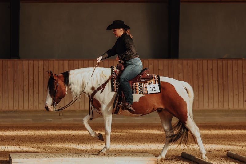 APHA, Stute, 2015, 154 cm Farbe: Dun Tovero / Overo (Regular) mit blauen Augen Vater: Dun Kicked it (von Dun It Gotta Gun, Hollywood Dun It) Mutter: Shimmer from Belgium (von Smart She Goes) 6-Panel N/N - OWLS, HYPP, PSSM1, MH, GBRED, HERDA Farbtest: N/N LWO Katie ist nicht nur schön, sie ist auch ein sehr liebenswertes und geselliges Pferd, sowohl gegenüber Menschen als auch Tieren. Sie hat ein ruhiges Temperament und ist in allen Handlungen zuverlässig, sie genießt es und steht still beim Waschen, Scheren und Putzen. Sie lässt sich von einer Person sehr leicht verladen und steht während des Transports ruhig. Sie kann von jedem geritten werden, egal ob Anfänger oder erfahren, sie wird dir geben, was du verlangst. Sie ist super cool und stabil sowohl im Stall, in der Arena als auch im Gelände und sogar verkehrssicher, sie kann alleine und mit anderen geritten werden. Sie hat solide Turniererfahrung und hat bereits bewiesen, dass sie ein All-Around-Pferd ist, mit Talent besonders für alle Ranch-Disziplinen. Sie ist sehr gut in Showmanship und generell ein wirklich gutes Musterpferd. Sie ist vollständig auf dem neuesten Stand bezüglich Impfungen, Hufschmied, Zähne, Entwurmung und Chiropraktik usw. Sie hat sich nie verletzt. Sie hat 2023 ein Fohlen. Hier sind einige ihrer Erfolge: APHA Amateur ROM Showmanship APHA Amateur Walk-Trot Zone 12 Champion (Weltmeisterschaftsqualifikation) APHA Amateur Halter Reserve Champion Stute Goldmedaille PHCDK Dänische Meisterschaft Silbermedaille PHCDK Dänische Meisterschaft Bronzemedaille PHCDK Dänische Meisterschaft PHCDK Highpoint Novice Amateur Performance Ehrenauszeichnung – 1. Platz Dänische Tierausstellung Geldverdienerin in Ranch-Klassen All-Around Champion - Open Standort: Süddänemark (1½ Stunde von der deutschen Grenze)
