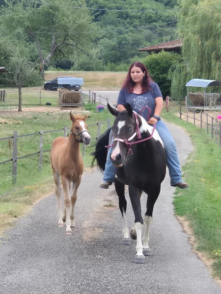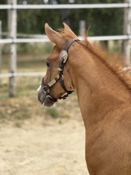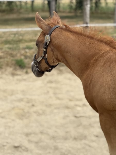 Pouliche Paint horse Sorrel overo minimal Son père Have A Mass Day, 5eme au championnat d’Europe, 6 Foix champion régional, il continue d’exercer dans plusieurs disciplines. Son père Mister Sacred world champion sire et par le bien connu Sacred Indian Sa mère WM Ladys Assets, jument qui a concourut en show à son jeune âge où elle a gagner en showmanship, horsemanship et pleasure. A également participé au championnat d’Europe montée. Son grand père n’est autre que le grand Hes Got The Assets (APHA Reserve World Champion Western Pleasure Multiple Superiors Amateur Versatility APHA earner of over 600 points) Pouliche de qualitée, pour maison 5⭐️ Négatives au panels et testé Aa ee lwo