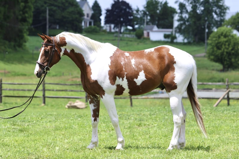 "AVAILABLE ON ONLINE HORSE AUCTION AT www DOT MagicHorseAuction DOT com BIDDING OPEN NOW thru TUESDAY | AUGUST 19TH! - BUY IT NOW AVAILABLE! *Final price will be determined on auction site* CONSIGNOR CONTACT INFO: Juli Hubik 717-875-2061 LOCATION: Gap, PA Check out this stunning boy! ✨ Django ✨ is an 11-year-old, 15.3–16hh Paint gelding. This guy has all the right markings, and he’s put together very nicely. He rides English, Western, he’s a trail master, and he drives! He’s sweet and respectful on the ground, and he doesn’t have a mean bone in his body! On the trail, Django always has a happy-go-lucky attitude. His ears are always perked forward! He has a forward way of thinking; however, he’s not one to run away with you. He’s a brave one and will gladly lead the group—through anything! He’ll go through water, bridges, ditches, mountains, and tunnels. He’s seen deer, hikers, dogs, bicycles, flags, traffic, and just about everything else you can think of while out on the trail! He’s sensible, sure-footed, and steady. He has lots of miles under his belt and has primarily done trail work as his job! He loves it and is never the type of horse to try to get out of work. He would make an ideal candidate for hunter paces, fox hunting, and paper chases! In the ring, Django has been learning a lot with us! He’s smart as a whip and seems to learn more with every ride. He’s always willing to learn and happy to work. He hasn’t had a lot of experience in the ring, but he has a solid WTC in both directions. He moves off leg, responsive to leg to side pass, and spin. He knows the difference between using leg to move forward- versus off of it. He’s been smoothing out his transitions, his trot is adjustable, and he’s so fun to ride! We could see him excelling in dressage with his naturally fancy way of moving, forward-thinking attitude, and willingness to learn. Django has also been lightly started over jumps and could definitely progress in that direction. He’s been cross-country schooling and was honest and straightforward. With more muscle building and direction, we have no doubt he’ll be an absolute star! He’s not suited for complete beginners at this time—solely because of his forward, responsive nature. However, for a confident junior or adult amateur who likes a self-motivated horse, he would be a perfect fit! He’s not dangerous or naughty in any way, shape, or form. In the barn, Django is always sweet and easy to handle. The kids can lead him, groom him, braid his mane, and pick his feet! He’s such a gem—truly a kind-hearted horse who can continue in any direction! Django is UTD on Shots, Coggins, Dentist, Deworming, and Farrier. He is sound and healthy with zero health problems or concerns. He has one old scar that does not affect him. Call or text Juli for more info- 717-875-2061