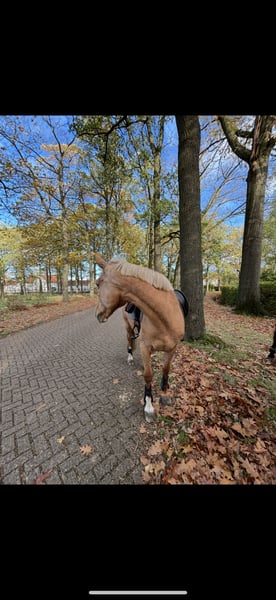 Perla - knap en super lieve palomino!✨ Hoe knap is dit paardje… Perla is een hele lieve en vertrouwbare merrie. Een paard waar je alles mee kan doen: poetsen, wassen, bosritten, dressuur rijden, wedstrijden, een sprongetje… en noem maar op! Perla is 11 jaar en 160 cm groot, ze is iets breder gebouwd dus is geschikt voor alle ruiters met ervaring. Onder het zadel is heel makkelijk op de hulpen en reageert ze gelijk, ze zal nooit ineens bokken, stijgeren of wegrennen. Perla komt uit Spanje en we hebben haar nu 2 jaar bij ons maar vanwege tijd te kort door werk, heb ik na veel twijfel toch besloten om haar te verkopen. Dat ze alle tijd en aandacht krijgt die ze verdient. Ze gaat alleen naar ⭐️⭐️⭐️⭐️⭐️ 5 sterren huisje!! Kan jij dat haar geven? stuur dan zeker een berichtje.