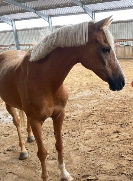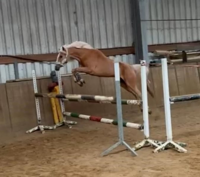 We are selling our loving and reliable pony mare Sunny due to a change of rider. Key data: - Name: Sunny - Breed: German Riding Pony - Gender: Mare - Height: 1.43 m - Age: 18 years (born on 12.06.2006) - Color: Palomino - Training level: A - Placings: E About Sunny: Sunny is a real all-round talent with competition experience. She is currently being ridden at E level in dressage and at E level in show jumping, but has potential for A level show jumping. She has recently placed several times at competitions and always shows her willingness to perform. Sunny is a pony that harmonizes best with an experienced and sensitive rider. She is willing to work, reliable and very versatile with the right leadership. She is ideal for ambitious riders who are looking for a pony with which they can progress and enjoy competing. Miscellaneous: Sunny will only be given into loving hands that can offer her a species-appropriate attitude, sufficient exercise and a trusting partnership. Because Sunny had a few teeth extracted about a year ago, she needs additional feed.