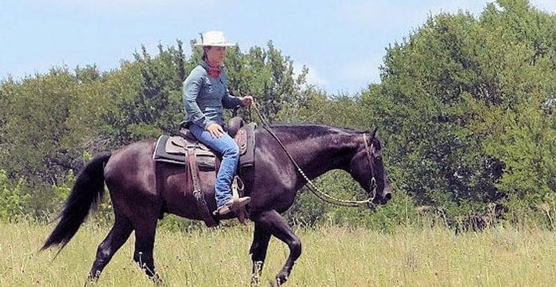 Romance est un magnifique hongre noir, bien construit, idéal pour le ranch et les randonnées ! Il vient à vous dans son box ou lors de ses sorties et cherche à recevoir de l’affection. Il a parcouru de nombreux kilomètres en extérieur : camping en bivouac, randonnées en forêt, parcs d’État et entraînement en dressage western ! Romance est vraiment amusant ! Il possède un arrêt impeccable, un trot fluide et un petit galop agréable. C’est un excellent cheval de randonnée, à l’aise dans la circulation et dans l’agitation. Facile à attraper, mener, charger, transporter, il se tient en longe, se laisse brosser, monter, bridée, et reste calme pour le vétérinaire et le maréchal-ferrant. Il se tient bien pour la monte et la descente, monte en simple mors à anneau lâche, en mors à levier court ou en filet complet. Il répond bien à la rêne d’encolure ou à la rêne directe, reprend ses deux allures, recule, passe latéralement et travaille à la porte. Regardez sa vidéo et découvrez toutes ses photos : personne ne passe à côté de lui sans faire un commentaire, il est énorme, costaud et tout simplement magnifique ! Il a une personnalité adorable, complice, comme un chiot, et il est impossible de ne pas tomber sous son charme. C’est un cheval absolument superbe, un grand gentil garçon doux et affectueux.